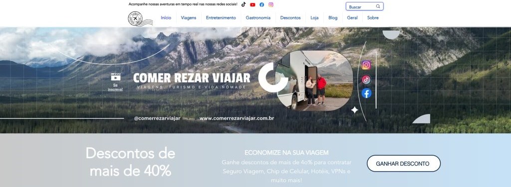 Comer Rezar Viajar – Viagens, turismo e vida nômade! O cliente buscava uma remodelagem no layout do site. Desenvolvi o projeto no Wix, aplicando técnicas de performance e usabilidade...