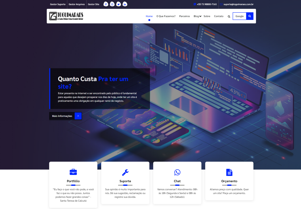 A cada clique uma grande ideia! Nosso site antigo de tecnologia mostrava modernidade para a época, com foco em transmitir confiança e profissionalismo no mundo do TI. Desenvolvi o...